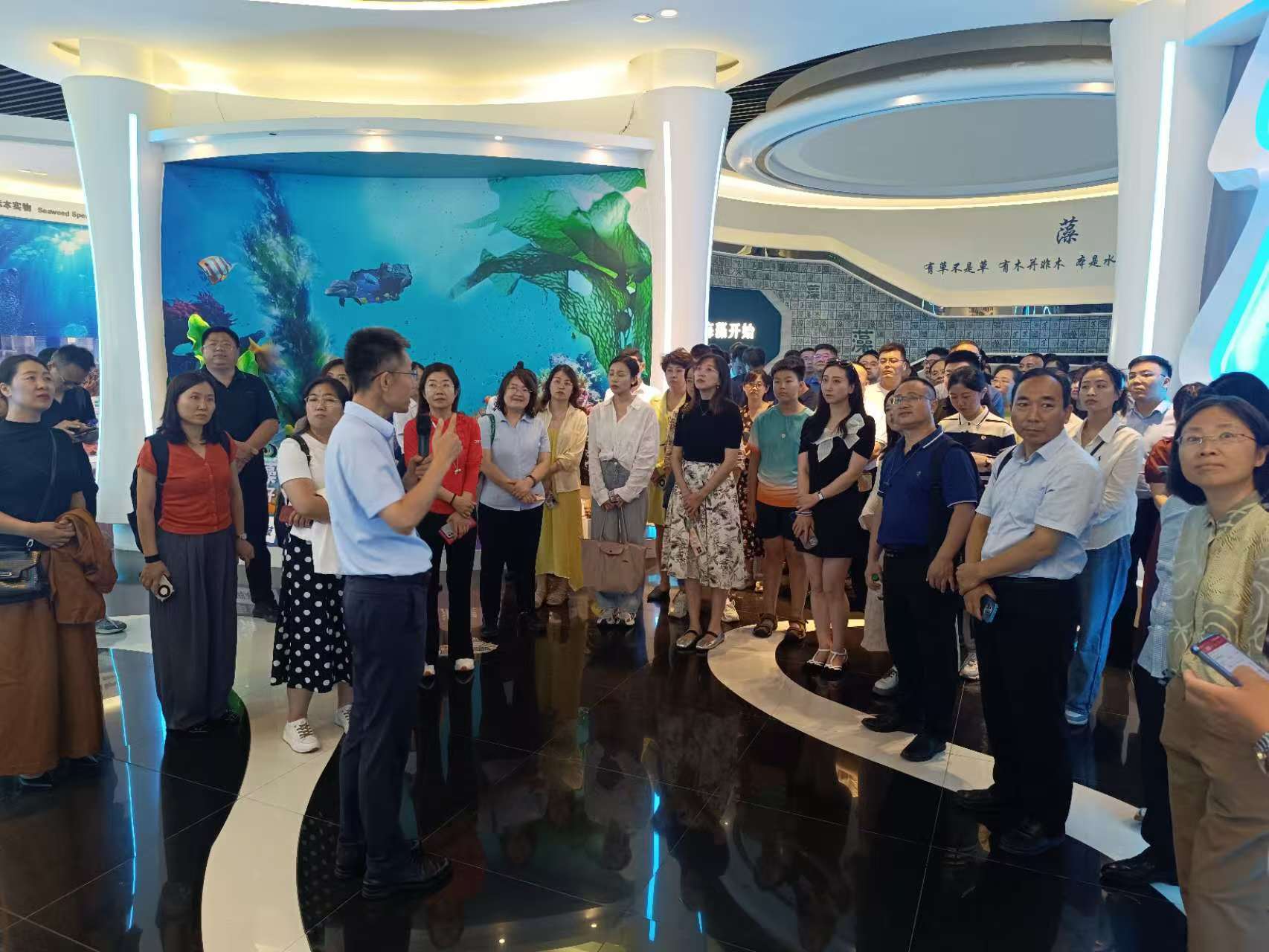 “經(jīng)略海洋,從一棵海藻做起。”第一站,聯(lián)絡(luò)員一行來(lái)到全球規(guī)模最大的海藻生物制品生產(chǎn)企業(yè)青島明月海藻集團(tuán),參觀了明月海藻生物科技館、海洋食品加工與安全控制全國(guó)重點(diǎn)實(shí)驗(yàn)室、海藻部落及明月海藻紅色文化長(zhǎng)廊。在參觀過(guò)程中,通過(guò)一系列互動(dòng)體驗(yàn)與展示,深入了解了海藻活性物質(zhì)在醫(yī)藥、保健、食品等多個(gè)領(lǐng)域的廣泛應(yīng)用,領(lǐng)略了“國(guó)家工業(yè)旅游示范基地”的魅力,了解了明月海藻依托海洋食品加工與安全控制全國(guó)重點(diǎn)實(shí)驗(yàn)室與智能工廠所擁有的先進(jìn)的科研實(shí)力和生產(chǎn)能力。