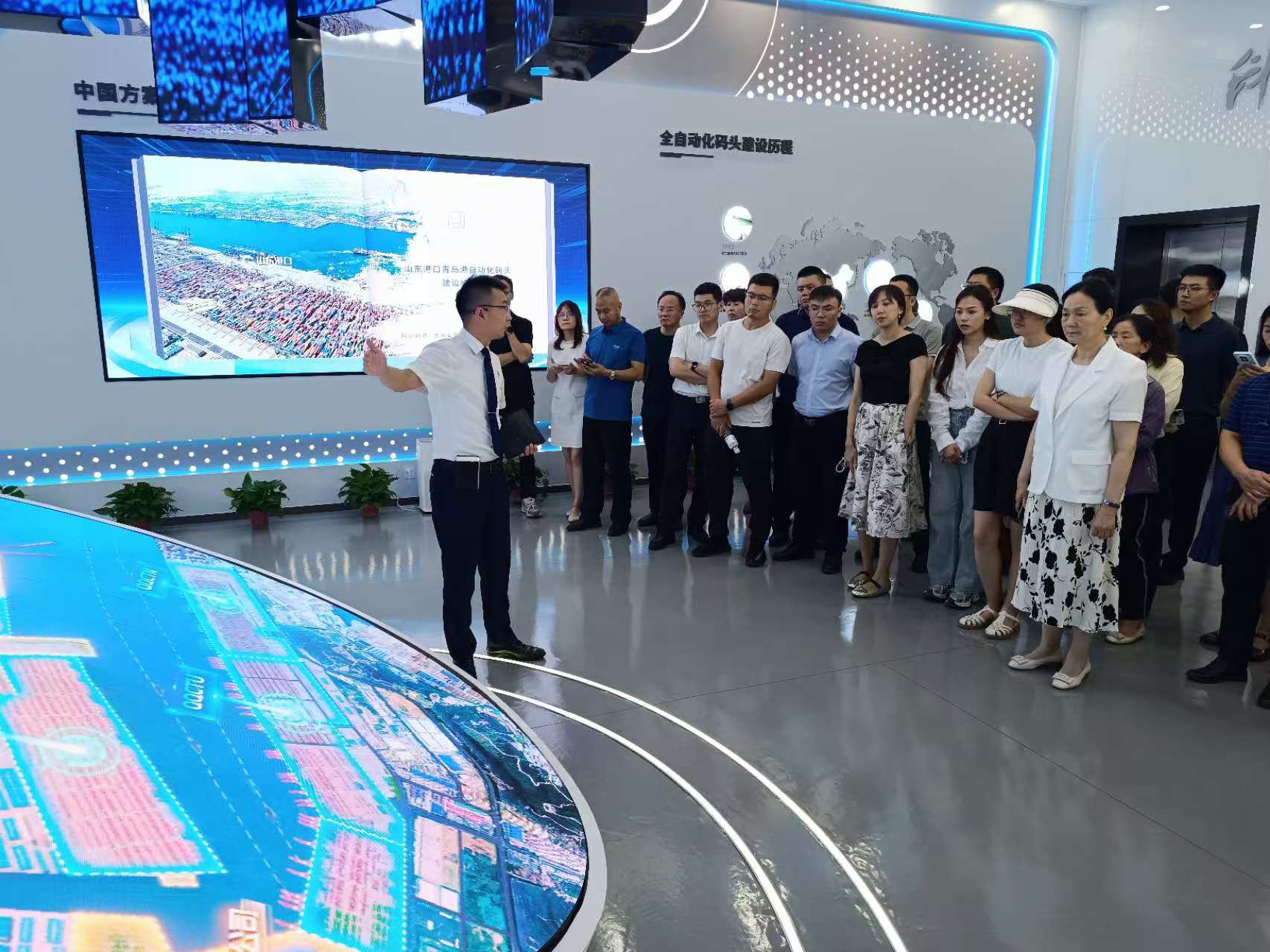 “發(fā)展新質(zhì)生產(chǎn)力,建設(shè)世界一流海洋港口”。第四站,聯(lián)絡(luò)員一行來(lái)到全球領(lǐng)先、亞洲首個(gè)全自動(dòng)化集裝箱碼頭和首個(gè)“氫+5G”智慧綠色碼頭-山東省港口集團(tuán)青島港全自動(dòng)化集裝箱碼頭,這也是全國(guó)首個(gè)全國(guó)產(chǎn)全自主自動(dòng)化碼頭。該碼頭實(shí)現(xiàn)了當(dāng)年投產(chǎn),當(dāng)年盈利,作業(yè)效率較傳統(tǒng)碼頭提升30%,節(jié)省人力80%,10次打破自己保持的自動(dòng)化碼頭裝卸效率世界紀(jì)錄。聯(lián)絡(luò)員們了解了青島新前灣集裝箱碼頭有限責(zé)任公司關(guān)于智慧港口建設(shè)實(shí)踐和綠色港口建設(shè)情況。山東省港口以科技創(chuàng)新賦能產(chǎn)業(yè)創(chuàng)新、以改革探尋轉(zhuǎn)型發(fā)展最優(yōu)解的高質(zhì)量發(fā)展新路徑給聯(lián)絡(luò)員們帶來(lái)深刻啟示。